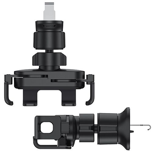 - Grawitacyjny mechanizm – automatyczne zaciskanie ramion po umieszczeniu telefonu w uchwycie, bez potrzeby użycia jednej ręki. Nie zasłania widoku na drogę ani elementów deski rozdzielczej.
