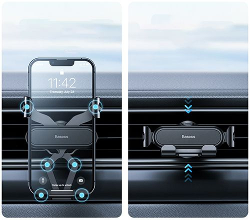 Baseus Stable Lite – Grawitacyjny uchwyt samochodowy do kratki nawiewu. Solidne mocowanie na kratce - skręcane mocowanie do kratki nawiewu